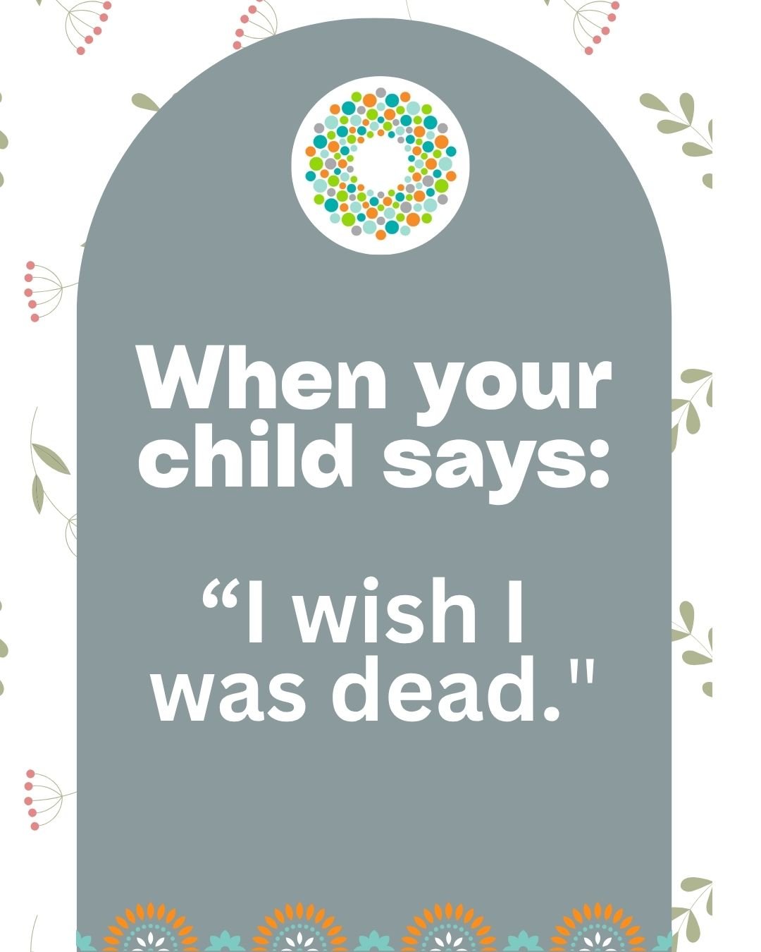Even if you don’t think your child means it, it can be scary to hear your child say, “I wish I was dead” or any variation of that. Children express big feelings in big ways because they don't yet have the tools to express complex emotions. Saying the most final thing they can think of, that they want to die, is their way of communicating a need. Young children do not fully grasp the concept of death and saying they want to be dead can be a way to express how bad one is feeling at that moment. Children mimick things they've heard others express in intense moments.